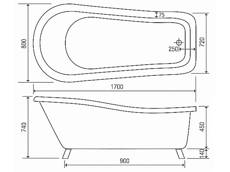 - Bath Size 1700mm x 800mm x 740mm.
